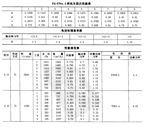 1)本風機為單吸入風機,機號有No.3.15、3.55、4、4.5、5、5.6、6.3、7.1、8、9、10、11.2、12.5、14等共14個機號組成。